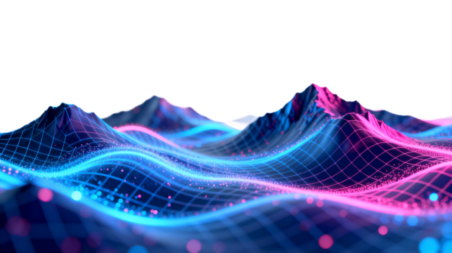 Futuristic Neon Landscape with Grid Mountains