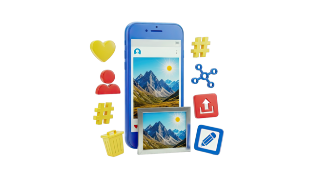 Social Media Icons and Smartphone with Mountain Image