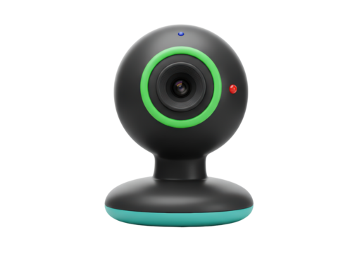 Isolated webcam showing a modern video call device with green trim and a dark finish