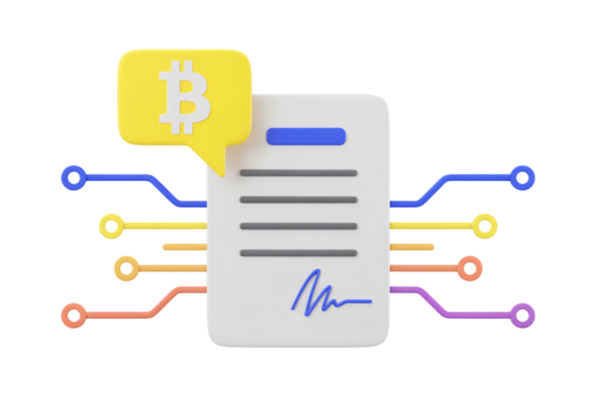 Secure digital contract with Bitcoin payment integration and blockchain technology, representing financial innovation and future transactions