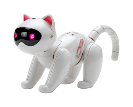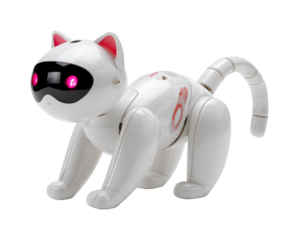 Robot cat playtime in a modern home toy environment PNG, isolated on transparent background
