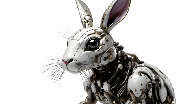 Rabbit or hare robot, robotic animal on transparency background PNG