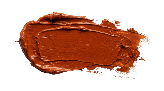 A rich, textured smear of brown paint, showcasing its creamy consistency and vibrant color.