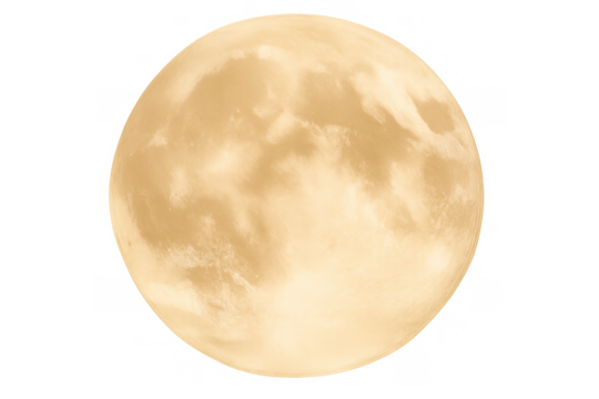 Bright golden orb isolated against black. Detailed lunar surface features visible