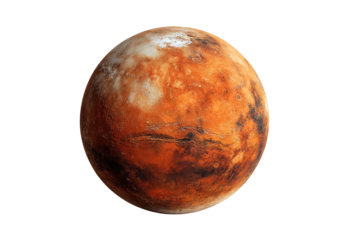 Detailed view of a textured reddish brown celestial body with visible surface features isolated on transparent background