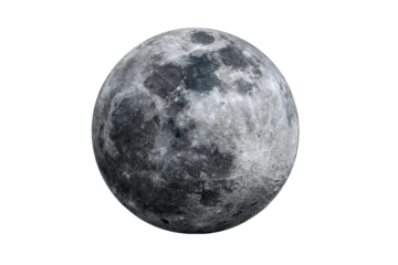 Detailed close up of the earth s moon with visible craters and surface texture isolated on transparent background