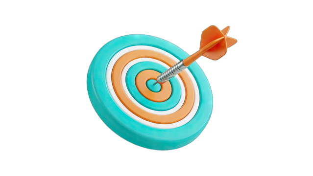 3D Target Illustration: Black White Concentric Circles and Red Center on Transparent Background