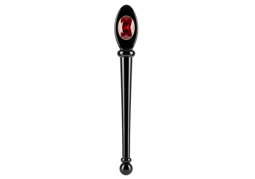 Elegant black decorative rod with a vibrant ruby-red gemstone accents the top, creating a striking visual.
