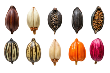 Vibrant Sunflower Seed Collection: A captivating array of twelve sunflower seed pods, each showcasing a unique color and pattern, creating a visually stunning display of nature's artistry.