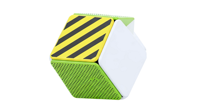 Abstract Geometric Sculpture with Warning Stripes