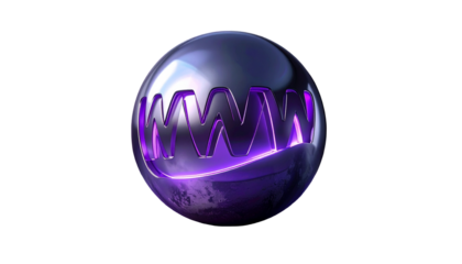 3D purple sphere with glowing 'www' inside, against a black backdrop