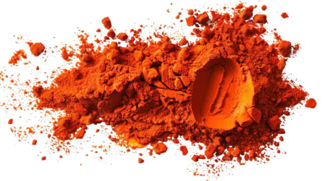 A vibrant pile of orange powder, ideal for cooking and seasoning. Perfect for food photography and culinary visuals.