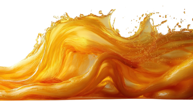 Liquid Dynamics: The dynamic motion of a liquid substance is captured, creating an aesthetic swirl and splash. The golden-amber hue of the liquid adds vibrancy and visual interest.