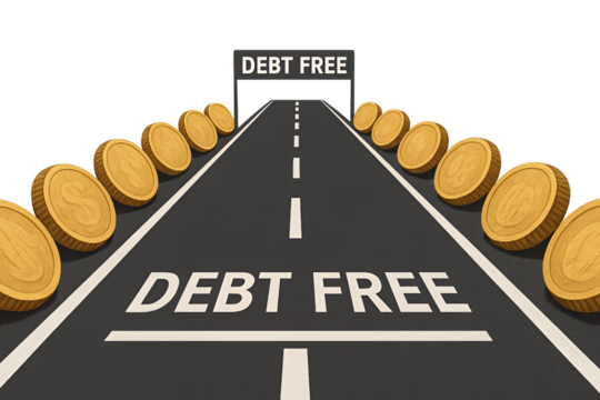 Debt-free road with gold coins symbolizing financial freedom Isolyate on transparent background