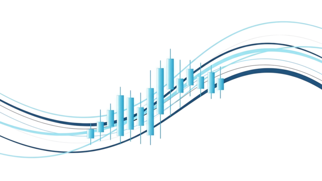 An abstract digital visualization of rising financial market data on a dark background isolated on transparent background