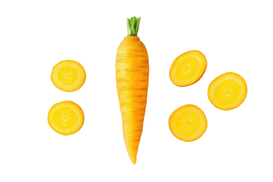 Neat multi-colored carrot rows flat-lay, gentle shadows, isolated on transparent background, great for diet-planner visuals and kids’ snack ads