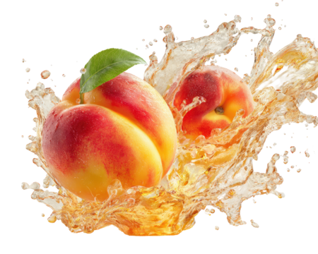 Two peaches in a splash of juice