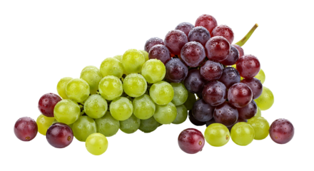 Fresh green grapes bunch with water drops, a healthy, sweet, and juicy fruit for a healthy diet, transparent background