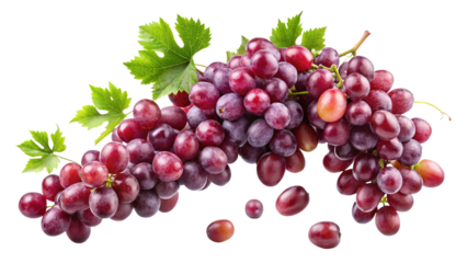 Freshly harvested red globe grapes with green leaves against Trensprent  Background png