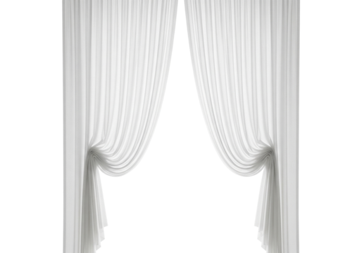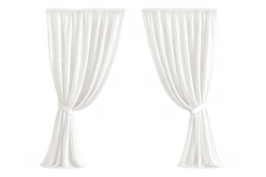 White sheer tied-back curtains enhancing interior design, creating elegant window decor on transparent background