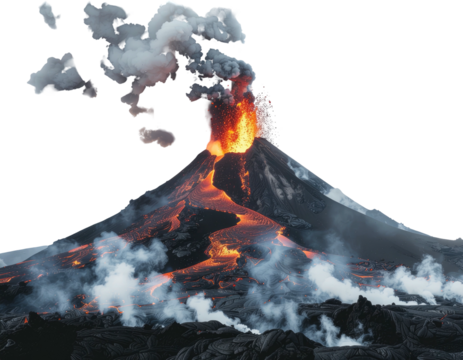 Powerful volcanic eruption spewing ash and lava into the sky isolated on transparent background
