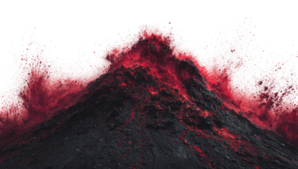 Volcanic eruption displaying lava flow nature scene dramatic view isolated on transparent background