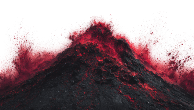 Volcanic eruption spewing ash and lava with intense heat and smoke isolated on transparent background