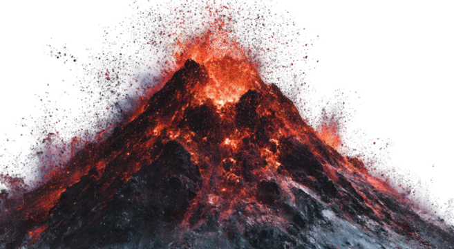 A realistic volcano erupting with lava isolated on white background.PNG