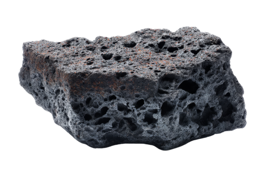 Porous volcanic pumice stone featuring natural holes and rough texture Isolated on a Transparent Background