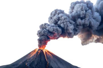 Volcanic Eruption with Fiery Lava and Dark Ash Pile Spewing Smoke Against Transparent Background