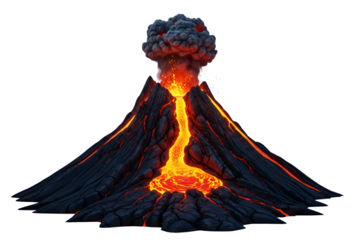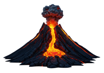 Erupting volcano with lava and smoke creating a dramatic landscape in a fantasy setting isolated on transparent background