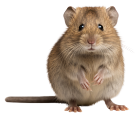 Small, light brown field mouse with white underbelly and pink feet stands Isolated on transparent background, png