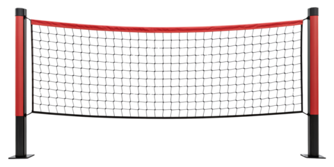 Volleyball Net with Red Trim and Black Posts on Transparent Background