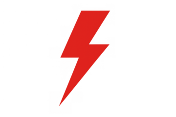 Red lightning bolt icon symbolizing energy, power, electricity, danger, warning and thunder on transparent background