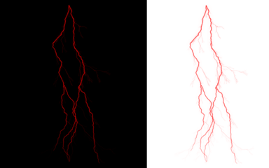 Red lightning bolt abstract symbol on black and white background