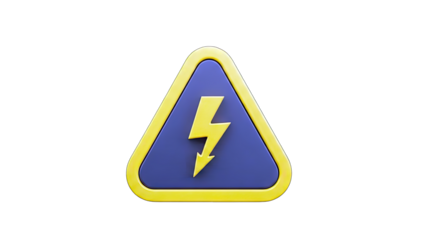 Yellow high voltage sign isolated, blue lightning bolt symbol on yellow background, danger warning sign for electrical hazards