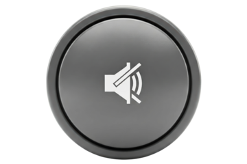 Round grey mute button with a speaker icon for silent mode isolated on a transparent background