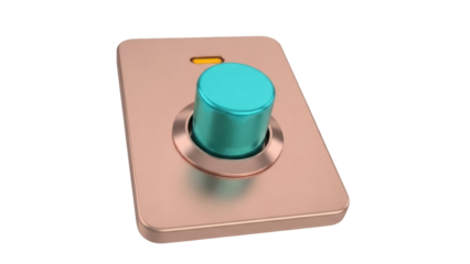 Futuristic silver volume control knob with glowing blue light for technology and audio interface isolated PNG with Transparent Background