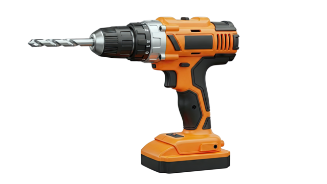 Orange and Black Cordless Electric Screwdriver on White Background.