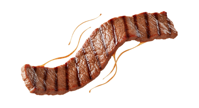 Grilled steak with delectable grill marks tantalizes the senses, poised diagonally against a pristine backdrop exemplifying culinary perfection and
