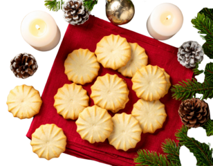 Rustikale Butterplätzchen auf antikem Weihnachtstisch von oben fotografiert