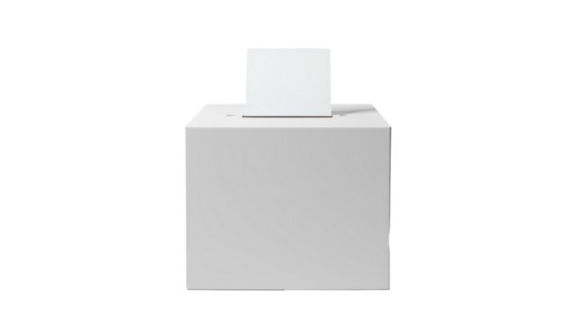 Pristine White Square Ballot Box with Top Slot – Isolated on Transparent Background