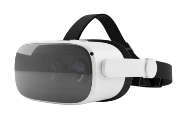 Young man using virtual reality headset isolated in transparent PNG, VR, future gadgets, technology, virtual event, video game concept