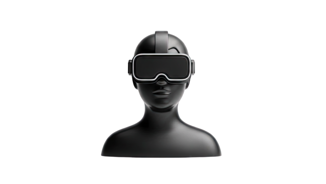 3D Rendering of a Black Mannequin Head Wearing VR Headset