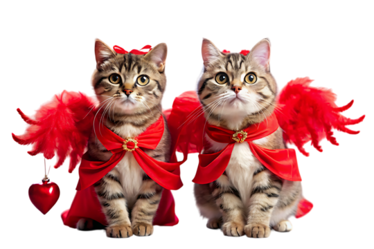 Two Adorable Brown Tabby Cats Dressed as Angels isolated on a transparent background brown cats kittens