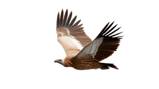 Soaring Vulture in Flight: The majestic vulture glides gracefully in mid-air, a symbol of power, freedom, and nature's enduring beauty. A captivating moment captured against a clean background.