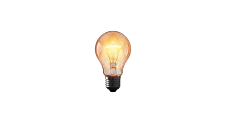 A single incandescent light bulb with a brass screw base isolated on transparent background