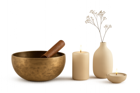 Meditation objects in Japandi style on transparent background