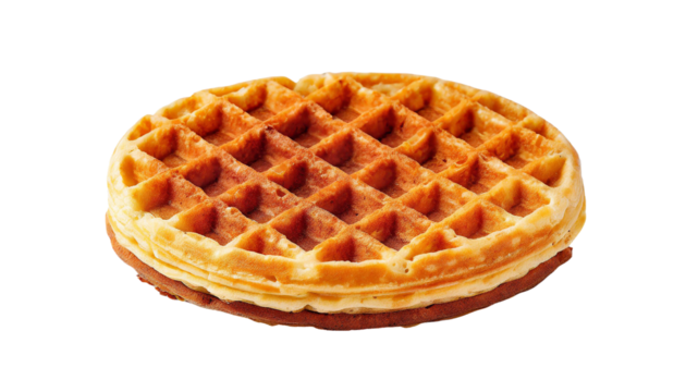 Waffle ice cream sandwich with vanilla and cookie cream filling creating a refreshing and sweet dessert on transparent background