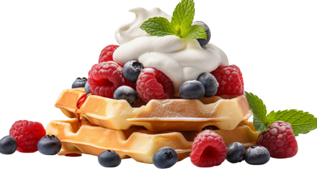 Delicious waffles with chocolate sauce kitchen food bright close-up isolated on transparent background